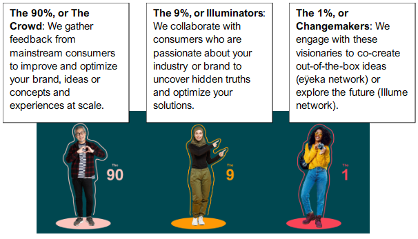 Experience the power of our collaborative networks. For some business challenges you might want to get feedback, while for others, you might need creative input and out-of-the-box ideas. We connect you with the right people for the right task at the right time. Our unique 90-9-1 approach shown below ensures diverse and relevant perspectives are brought to the table.
